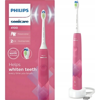 Philips Sonicare 4100. Pokročilá sonická technologie. Senzor tlaku. 2 čisticí režimy Clean a Sensitive. Indikátor pro připomenutí výměny kartáčkové hlavice. Výdrž baterie...