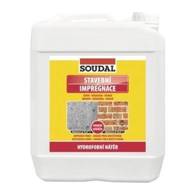 Soudal stavební impregnace 5 l odpuzuje vodu – hydrofobní zvyšuje životnost savých stavebních materiálů zachovává nový vzhled, omezuje vznik výkvětů vhodný pro exteriér i...