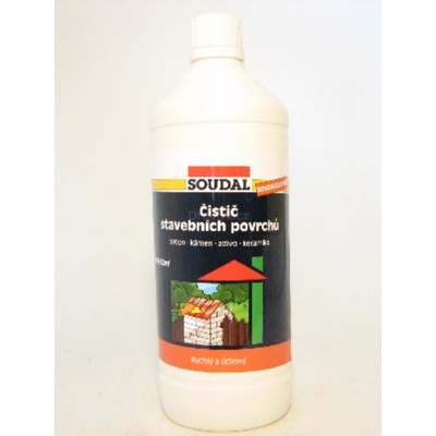 Soudal čistič stavebních povrchů 1l Účinný prostředek na čištění skvrn od vápna, cementu, spárovacích hmot, maltovin apod. Rychle čistí cihly, tvarovky, obklady, dlažbu, střešní...