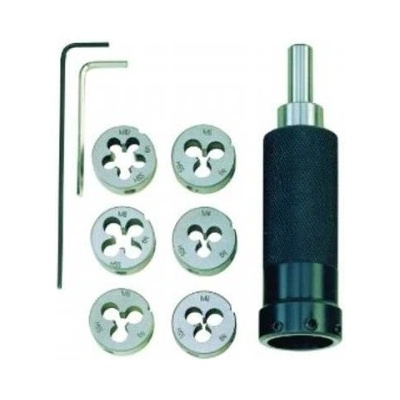 Proxxon 24082 Sada závitových čelistí pro závity M3 - M10 Dřík držáku s pr. 10 mm je určen k upnutí do sklíčidla soustruhu a držák je naváděn rukou.