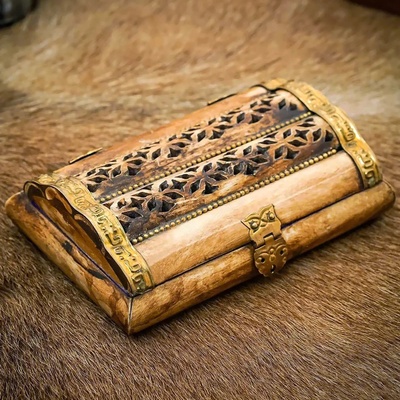 Kostěná truhlička "Noční sova" s mosazným kováním Skutečný klenot řemeslné práce Tato truhlička není jen obyčejná krabička. Její konstrukce je tvořena z pečlivě opracovaných...