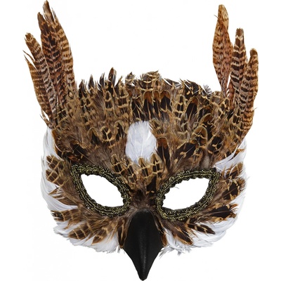 Krásná škraboška ve tvaru sovy s peří. Ideální doplněk ke kostýmu na karneval, tématickou akci nebo párty.