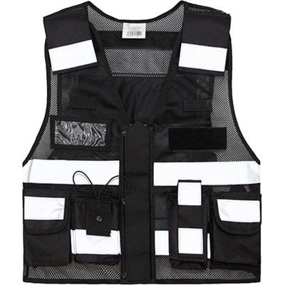 Síťovianá taktická vesta s výraznými reflexními pruhy ideální do teplého prostředí zip po celé délce vepředu, zesílený klopou všestranné použití díky různým kapsám různé...