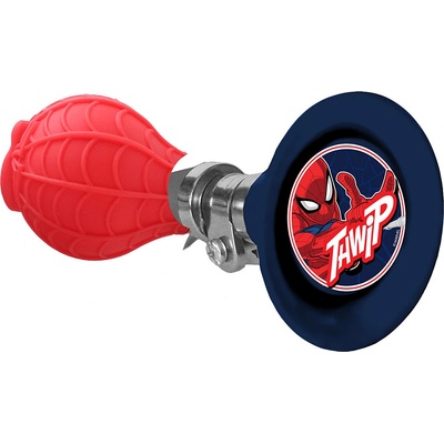 \nKlakson na kolo s motivem Spiderman.\nPřipevnění na řidítka.\nMateriál: kov - plast.\nRozměr: 14 x 6,5 cm.\nBarva: modro - červená.\nPro děti od 3 let.\nVýrobce: Seven.\n