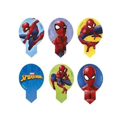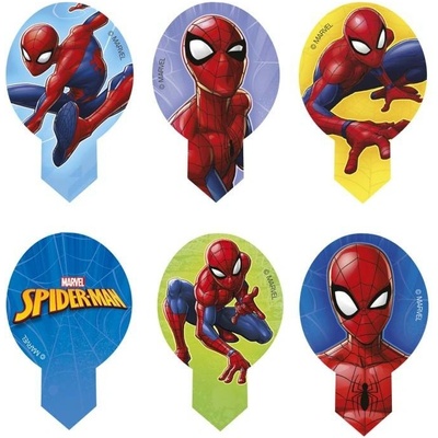 Jedlý zápich na muffiny s motivem Spiderman. 10 ks v balení, rozměry: 6,5 x 4 cm.