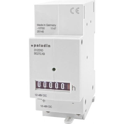 Počítadlo provozních hodin PALADIN 312270 (BG 70.29) - napětí 12-48V DC, bez krytu svorek, velikost číslic 4,4mm, kapacita hodin 99999, 2 modulové, montáž na DIN lištu, krytí...