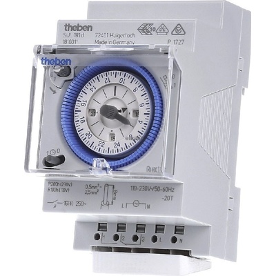 Spínací hodiny pro montáž v domovním rozvaděči, rezerva chodu při výpadku proudu, s nadřazeným ručním spínačem, základní izolace podle VDE 0730. motorový pohon, krystalem řízený, denní program - 48 pamět. míst. rezerva chodu 70 h.ParametryMnožství: 1 ksRozměry: (š x v...