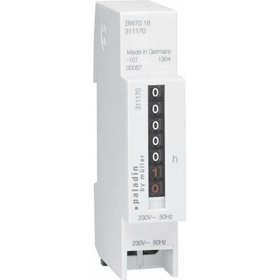 Počítadlo provozních hodin PALADIN 311270 (BW 70.29) - napětí 230V, 50Hz, bez krytu svorek, velikost číslic 4,4mm, kapacita hodin 99999, 2 modulové, montáž na DIN lištu, krytí...