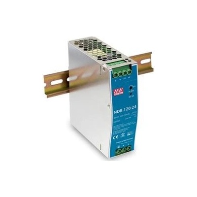 Průmyslový spínaný napájecí zdroj Mean Well NDR-480 je navržen pro montáž na DIN lištu. Poskytuje výkon 480 W s nastavitelným výstupním napětím v rozsahu 48–55 V a výstupním...