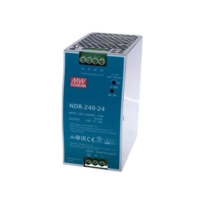 Průmyslový spínaný napájecí zdroj Mean Well NDR-240-24 je navržen pro montáž na DIN lištu. Poskytuje výkon 240 W s nastavitelným výstupním napětím v rozsahu 24–28 V a výstupním...