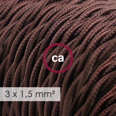 Potřebujete více elektřiny? Tento textilní elektrický kabel se širším průměrem 3x1,5 - umělý hedváb TM13 hnědý, je ideální pro vytvoření vlastní prodlužovačky, pro rozvody...