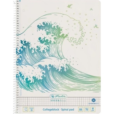 Spirálový blok A4 GREENline 70 listů - motiv Vlna bezdřevý papír, 80gsm bílý 80 listů no.28 ( čtverečkovaný s okraji) děrovaný, microperforace kulatá spirála, kulaté rohy...
