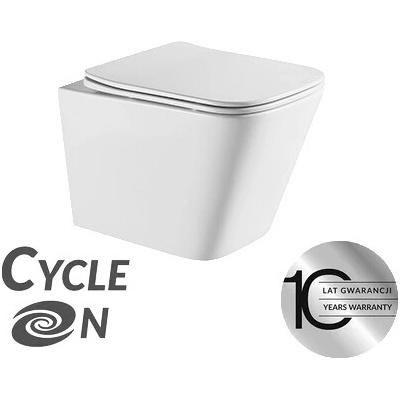 Laveo Kvadrato Cycleon 2.0, závěsná WC mísa s toaletním sedátkem z duroplastu, Vortex splachování, bílá lesklá, LAV-VMK_610S - Značka: Laveo - Model: Kvadrato - Délka: 490 mm...