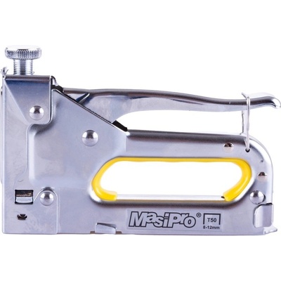 Celokovová profesionální sponkovačka umožňuje nastavitelný doraz a obsahuje velký zásobník na sponky. Do sponkovačky lze použít výšku sponky 6,8,10,12 a 14 mm.