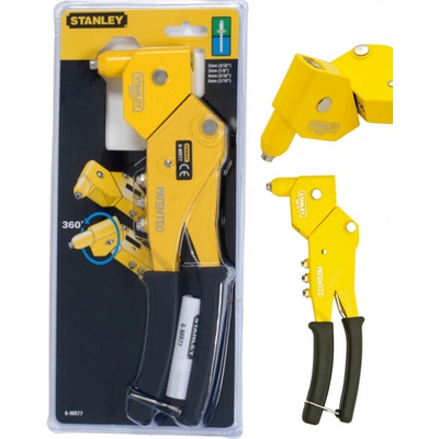 Profesionální nýtovací kleště STANLEY 6-MR77 Otočná hlava umožňující nýtování i v těžko přístupných místech. Dlouhé rukojeti usnadňují zmačknutí při nýtování Výměnné vložky...