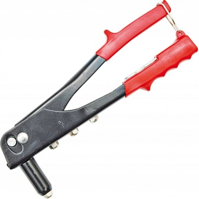 Charakteristika: - Celková délka: 240 mm - 4-výměné nýtovací koncovky - Průměr nýtů: 2.4 , 3.2 , 4.0 , 4.8 mm - Materiál nýtů: ocel, hliník - Klíč pro snadnou výměnu...