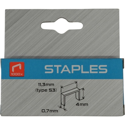 Sponky do sponkovačky pro snadnou fixaci Voliérového pletiva Balení: 1000 ks Hloubka (výška): 4 mm Šířka: 0,7 mm Délka: 11,3 mm 8 mm spony – zde Sponkovačka – zde