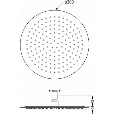 Technické údaje: Materiál dešťové sprchy: nerezavějící ocel S304 Povrchová úprava: Chromová Rozměry: 30 cm Standardní připojení G 1/2" Tloušťka: 2 mm Povrch disku...
