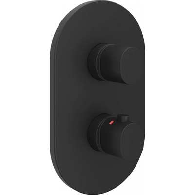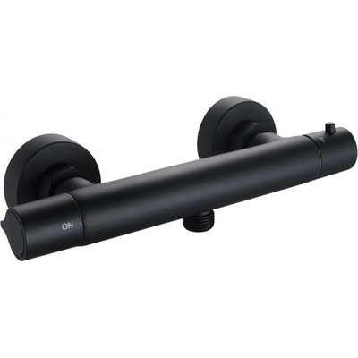 Termostatická nástěnná sprchová baterie bez sprchového setu v barvě černá matná. Rozteč baterie 150 mm. S matným povrchem.