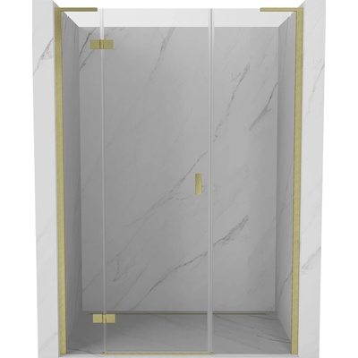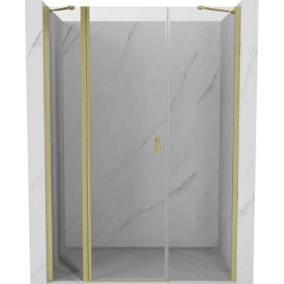 Specifikace produktu: Velikost: 150x200 cm Strana montáže: Levá Vstup: Otočný Barva skla: Transparentní Povrchová úprava: Zlatá kartáčovaná Profil: Hliníkový Stabilizátor úhlový...