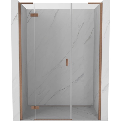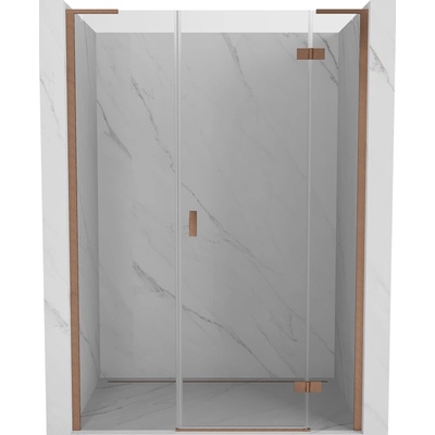 Specifikace produktu: Velikost: 150x200 cm Strana montáže: Levá Vstup: Otočný Barva skla: Transparentní Povrchová úprava: Kartáčovaná měď Profil: Hliníkový Stabilizátor úhlový...