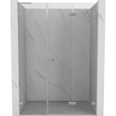 Specifikace produktu: Velikost: 150x200 cm Strana montáže: Pravá Vstup: Skládací Barva skla: Transparentní Dokončení: Kartáčovaný nikl Profil: Hliníkový Stabilizátor L: Nerezová...