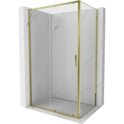 Specifikace produktu: Rozměr: 150x200 cm Strana montáže: Levá Vstup: Otočný Barva skla: Průhledná Povrchová úprava: Zlatá kartáčovaná Profil: Hliníkový Stabilizátor rohový L:...