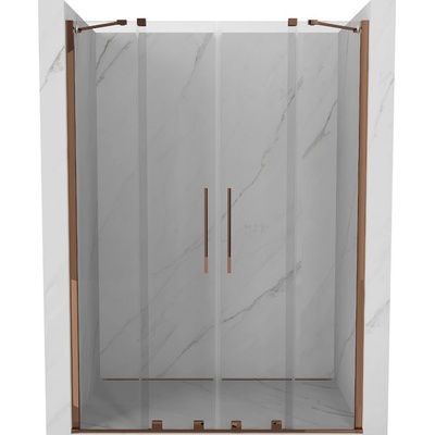 Specifikace produktu: Rozměr: 150x200 cm Instalace: Univerzální Vstup: posuvný Barva skla: Transparentní Povrchová úprava: růžové zlato Typ skla: Tvrzené Tloušťka skla: 8 mm...