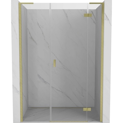 Specifikace produktu: Rozměr: 150x200 cm Strana montáže: Pravá Vstup: Otočný Barva skla: Transparentní Povrchová úprava: Zlatý kartáčovaný Profil: Hliníkový L stabilizátor:...