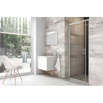 Sprchové výklopné dveře s pevnou stěnou KERRIA PLUS výšky 2000 mm otevíranými pouze ven a transparentním sklem, které opticky zvětšují místnost a hliníkovým profilem v chromovém...