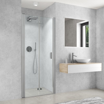 Dvoukřídlé sprchové dveře pro instalaci do niky Tato technicky precizní série sprchových koutů používá speciální otočné profily se zdvihovým mechanismem, které umožňují...