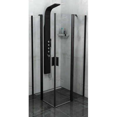 Sprchový kout AIRLINE BLACK R909, 90x90 cm, se dvěma jednokřídlými dveřmi s pevnou stěnou, rohový vstup včetně sprchové vaničky z litého mramoru Rozměr sprchových dveří : 86,8...
