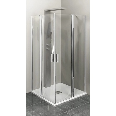 - rozměry: 90 x 90 cm - instalační rozměr: 88-90 cm - výška: 165 cm - šířka vstupu: 90 cm: šířka: 47,5 cm - průhledné sklo, tloušťka 6 mm (posuvná část), 5 mm (pevná část) -...