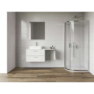 Skleněná výplň a spolehlivý pojezd - vše co potřebujete k dlouhodobé spokojenosti. Díky svému tvaru kout zpříjemňuje pohyb v koupelně.