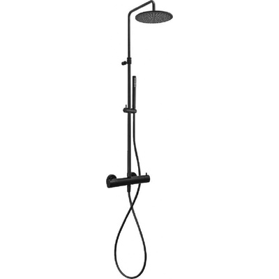 Výškově nastavitelný sprchový sloup s termostatem provedení černá mat set obsahuje: termostatická sprchová baterie s přepínačem kulatá hlavová sprcha Master, průměr 225 mm, kovové provedení kulatý posuvný držák Eco tyčová sprchová hlavice flexibilní hadice 1500 mm...