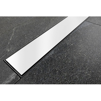 Podlahový nerezový žlab Tec 700 mm s krycím roštem – bílé sklo Sprchový žlab s roštem vyplněným bílým sklem Rozměr roštu 70×7 cm Rozměr s izolačním okrajem 74×11 cm Minimální...