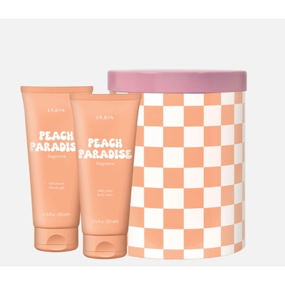 Pupa Happy Box Peach Paradise tělové mléko 200 ml + sprchový gel 200 ml + plechová krabička