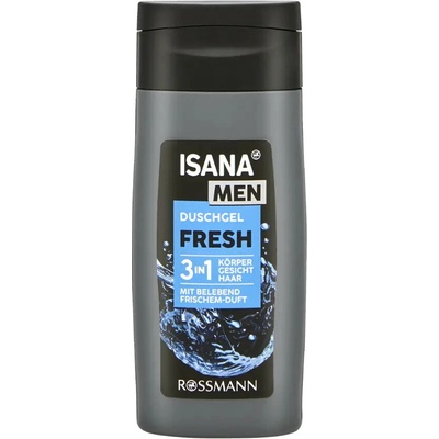 ISANA MEN Sprchový gel 3v1 Active Sport vitalizuje a pečuje - pro novou sílu a extra svěžest. Na tělo, vlasy a obličej.