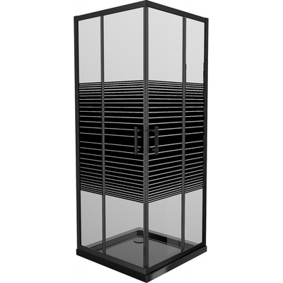 Technické údaje kabiny: Rozměr: 70 x 70 cm Výška: 190 cm Montáž: Univerzální Vstup: Posuvné dveře Barva skla: pruhy Povrchová úprava: černá Typ skla: Tvrzené ...