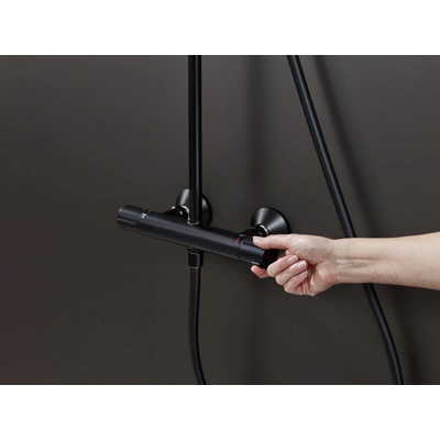 Specifikace výrobku: Materiál sloupu: Nerezová ocel, ABS Povrch sloupu: Černá Výška: 950 mm Šířka sloupu: 22 mm Délka od zdi: 380 mm Posuvný držák na sprchovou hlavici...