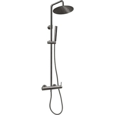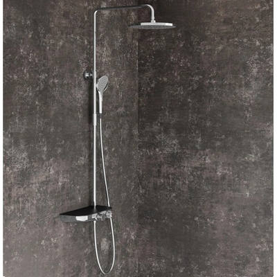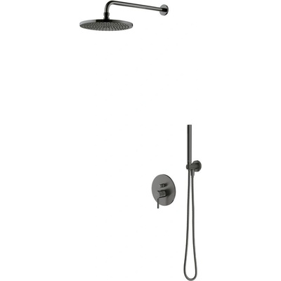 Sprchový systém s pákovou baterií obsahuje: Sprchovou pákovou baterii: Barva: gun metal Materiál: mosaz Pákové ovládání Instalace na stěnu 2‑cestný keramický přepínač mezi...