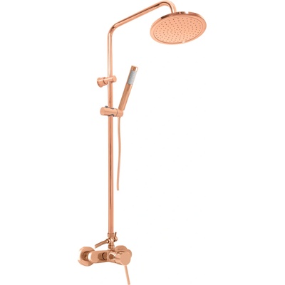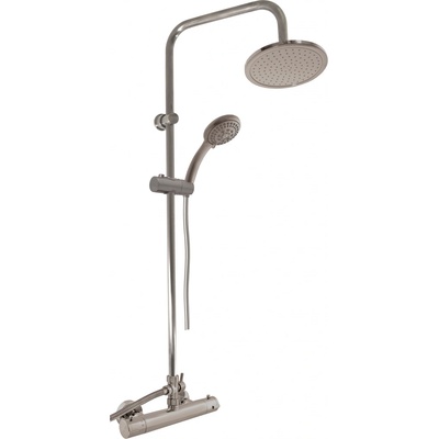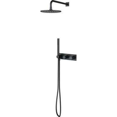 Sprchový systém s termostatickou baterií obsahuje: Sprchovou termostatickou baterii: barva: broušený Gunmetal materiál: mosaz kohoutkové ovládání instalace na stěnu rozteč:...