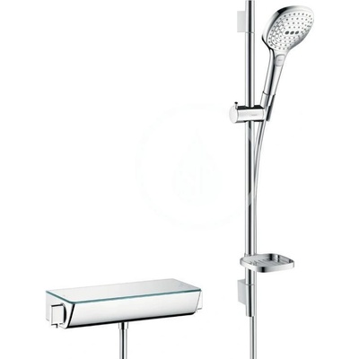 Sprchový set Raindance Select E 120 ruční sprcha, sprchový termostat Ecostat Select, sprchová tyč 650 mm, jezdec, miska na mýdlo druh proudu: Rain, RainAir, Whirl pohodlné...