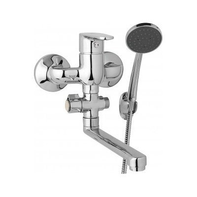 JB SANITARY D10 32 11 TIRA Nástěnná umyvadlová a sprchová baterie s ramínkem 300 mm, rozteč 100 mm - otočný přepínač - s příslušenstvím: nerezová hadice dvouzámková 150cm, pevný...