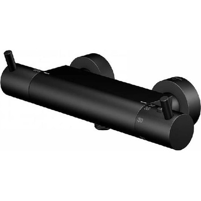 Sprchová termostatická baterie barva matná černá materiál mosaz ovládání kohoutkové kulaté rozety nástěnná instalace rozteč 150 mm termostatická kartuše ochrana proti zpětnému...