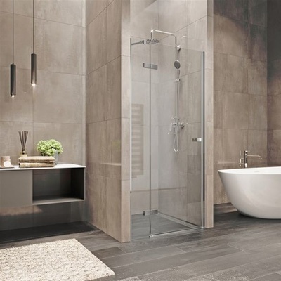 Skládací sprchové dveře.- šířka: 90 cm- šířka vstupu: 78 cm- skutečná velikost při instalaci do výklenku: 87,5-90,5 cm- nastavitelné na profilech o 2 cm na jedné straně, o 1 cm...