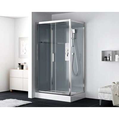 PopisZástěnaVýplň: přední strana bezpečnostní tvrzené čiré sklo 5 mm, zadní stěny kouřové tvrzené sklo Rám a rohový profil: hliník, mat Univerzální instalace vlevo / vpravoVaničkaTyp: samonosná s kovovou konstrukcí Rozměry: 120x80 cm Materiál: ABS/PMMA...