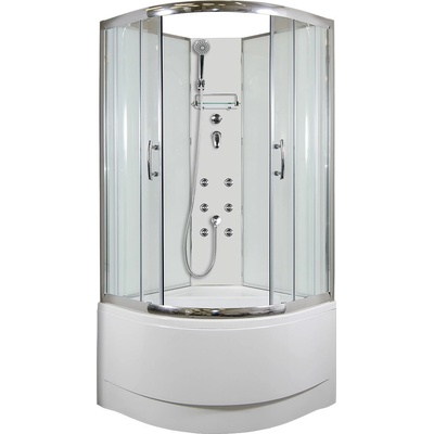 Mereo Sprchový box, čtvrtkruh, 90 cm, satin ALU, sklo Point, zadní stěny bílé, litá vanička, bez stříšky CK35122KMW