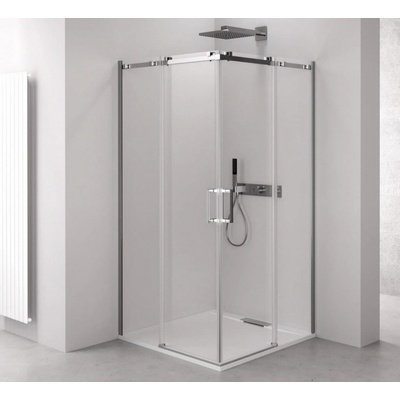 Rohový sprchový kout Top-line, 90x190 cm, dvoukřídlé čiré dveře, povrchová úprava Aquaperle, profily hliník, povrch aluchrom, výplň bezpečnostní sklo tl. 6 mm, dekor Durlux. K...