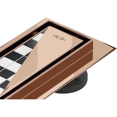 Technické údaje: Materiál: Nerezová ocel AISI 304 Povrchová úprava: Růžové zlato Šířka: 100 cm Šířka krytky: 31 mm Hloubka montáže: 52 mm Průtok: 50 l/min Obklopující límec - 2...